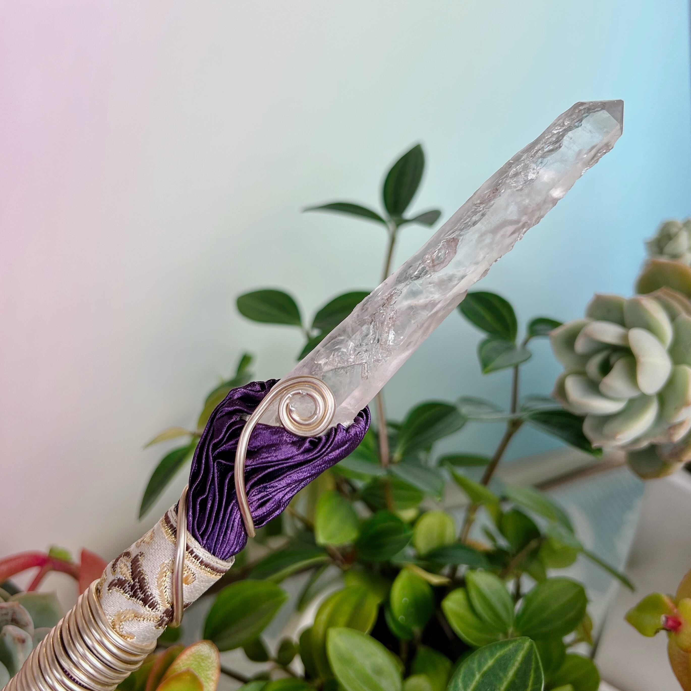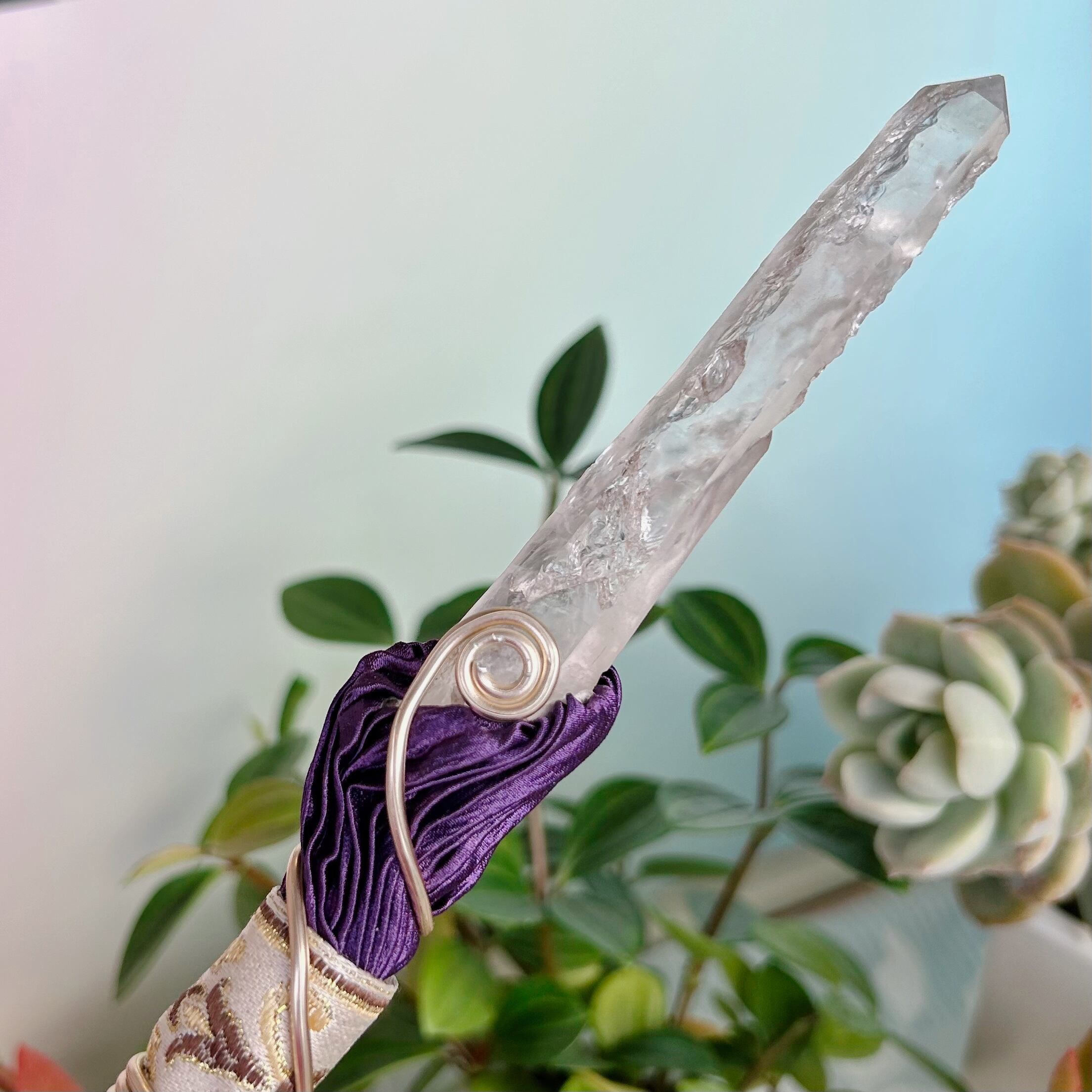 レアストーンですので手放すことをためらいましたが、必要な方に届けばと思い、高貴な紫と織リボンの豪華なドレスを着せて送り出します。このクリスタルの芯の強さと生命力にあやかりたいと思う方にお勧めします。