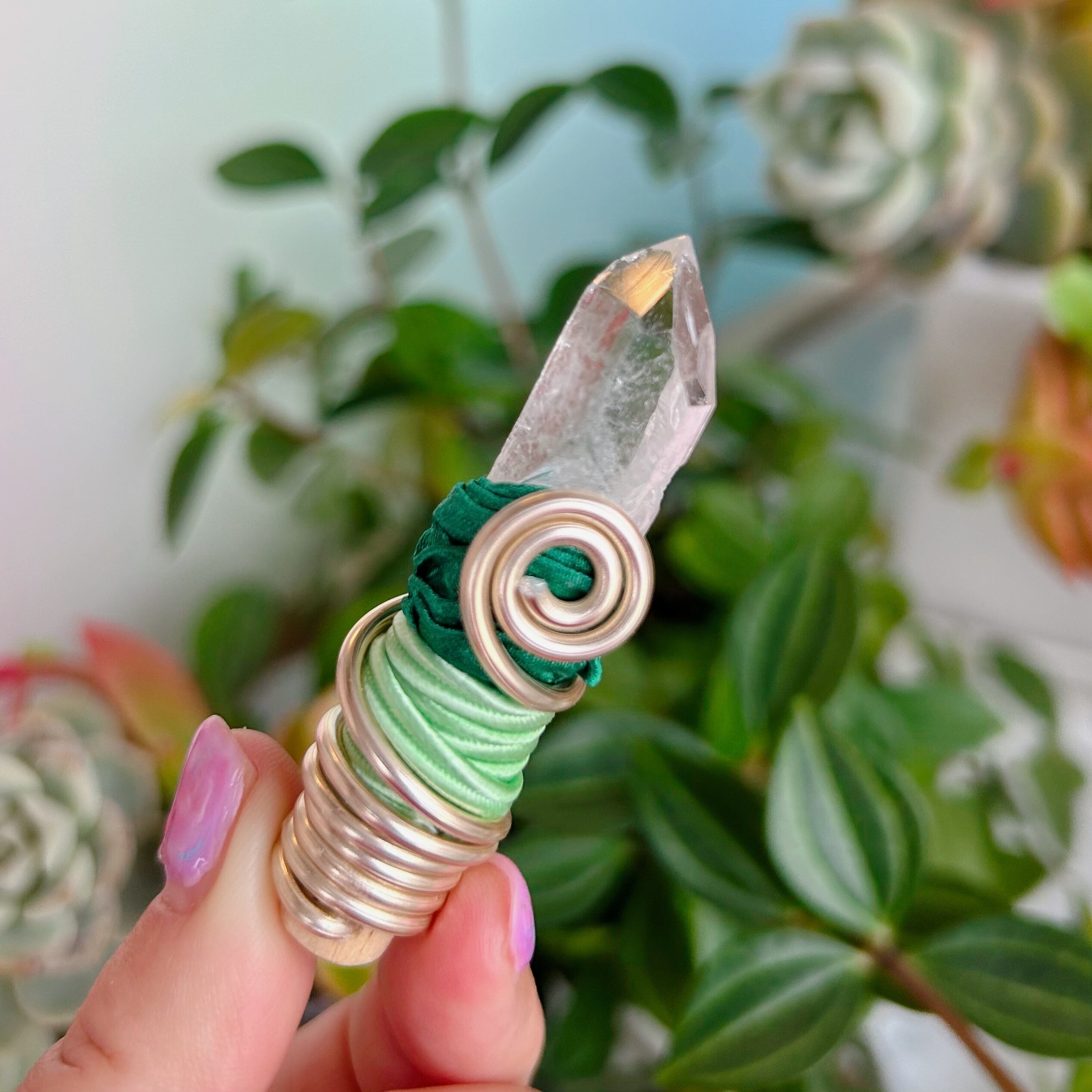 魔法の力を秘めたこのワンドの特徴は、ぽってりとしたフォルムのクリスタルです。
